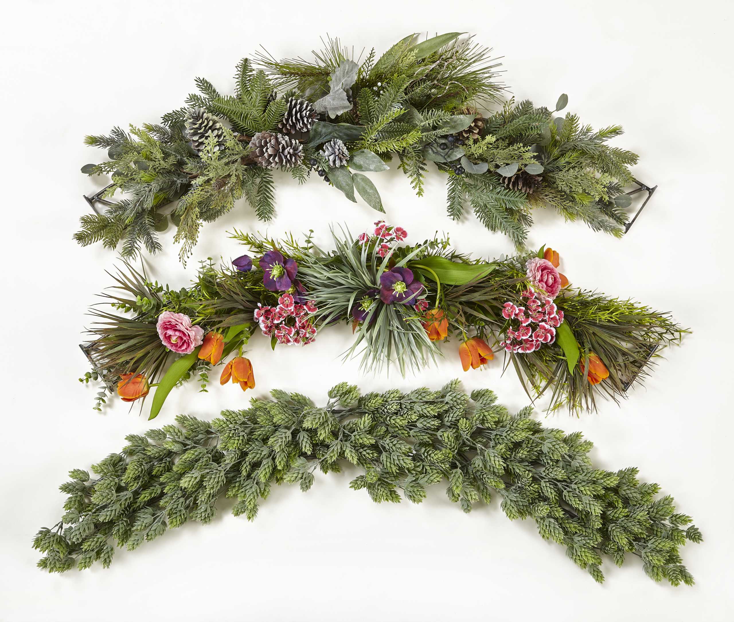 Some examples of wreaths made with Build-It-Yourself Double-Rail Hand-Tied rings: