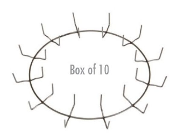 The 12″ Clamp Ring 10 Pack is a box of 10 Mitchell 12″ clamp rings. The 12″ rings are produced with 0.135″, 10 gauge, frame wire and contain 12 clips.
