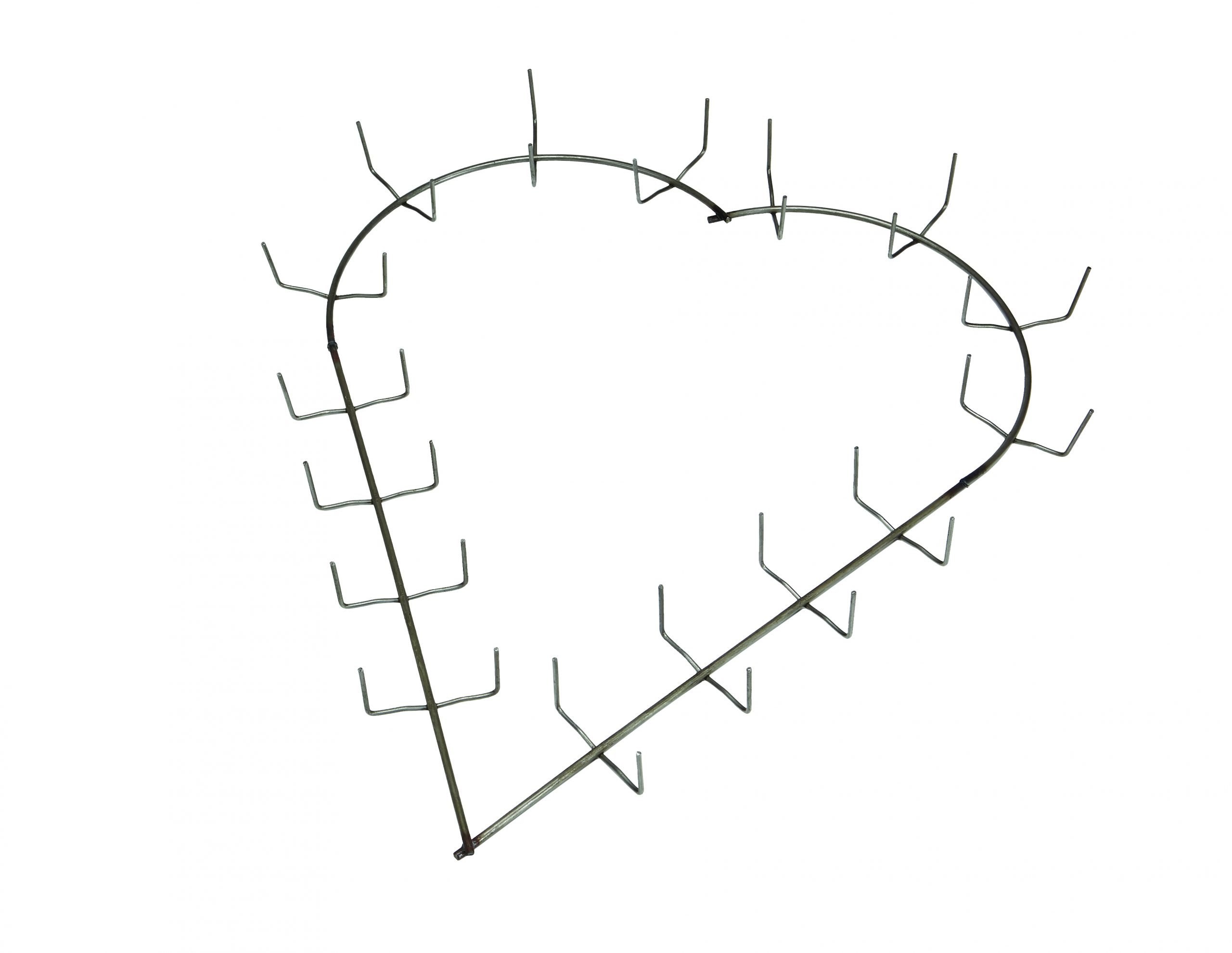 The smaller of our custom clamp heart frames, this novelty wreath form is 18″ tall and features 16 regular-sized clips. The heart frame is constructed from durable 7 gauge, 0.177″ steel wire to ensure it holds its shape season after season, even when packed to the brim with bright flowers and foliage. Our charming heart-shaped wreath form is the perfect way to accent your Valentine’s Day and anniversary celebrations, or any romantic occasion in between.