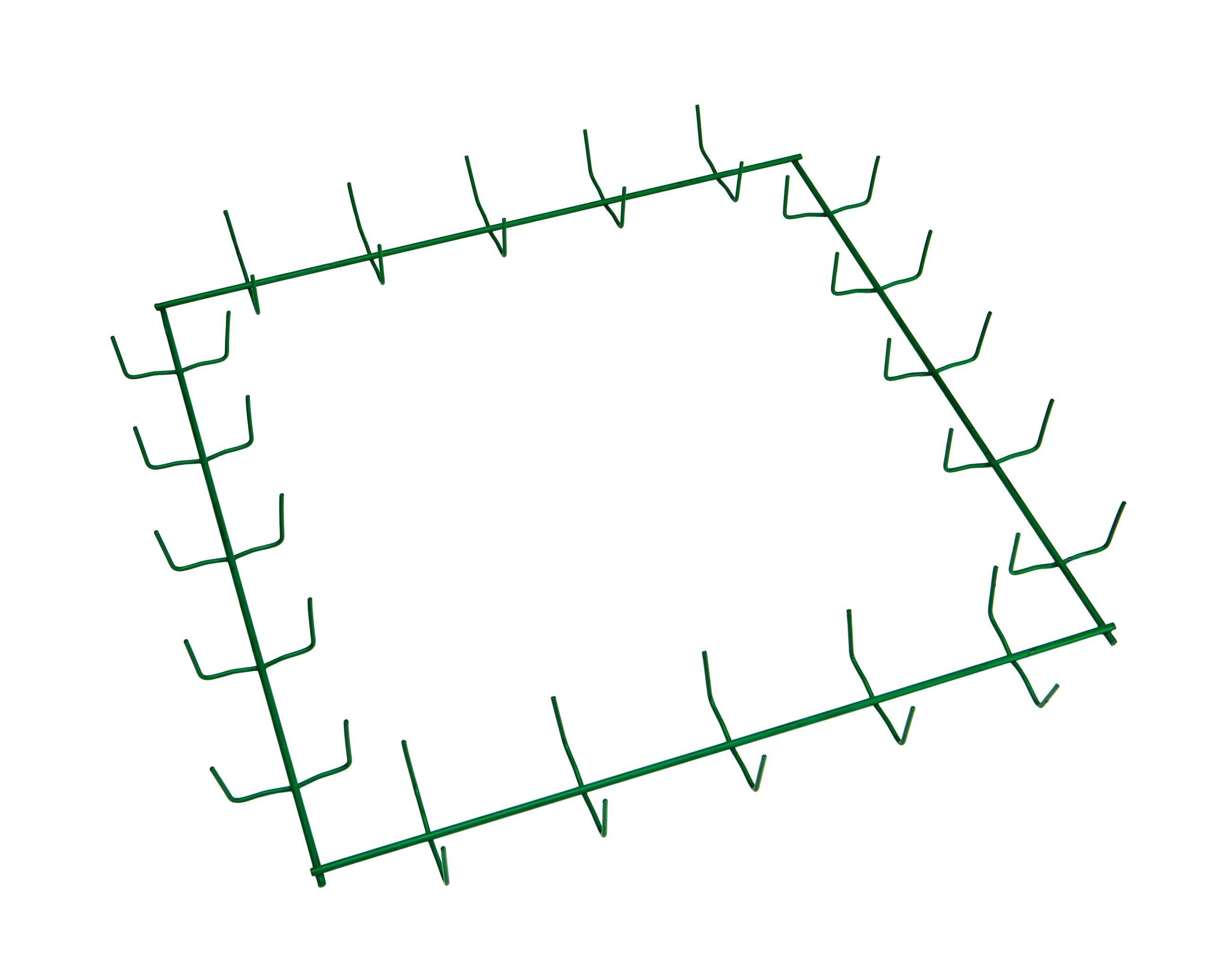 Our larger 18″ clamp square frame finished in a quality green paint. This uniquely customizable wreath form is constructed from four 18″ sides, each featuring 5 regular-sized clips. The premium wire frame is constructed from durable 0.177″ diameter, 7 gauge steel wire. This sturdy wreath form is guaranteed to hold its shape season after season, while the custom green powder-coated finish provides a touch of elegance along with enhanced corrosion resistance.