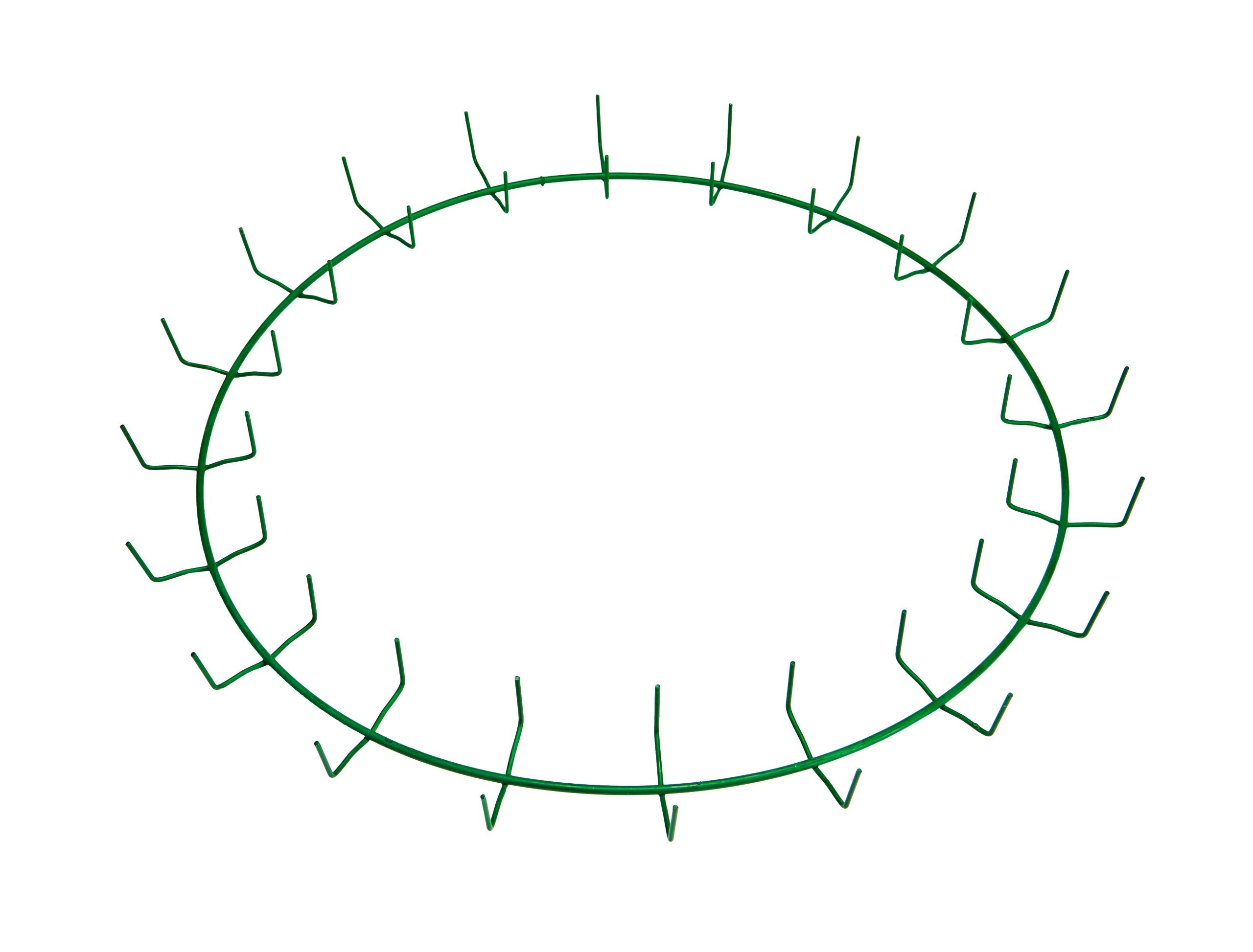 Our medium-sized clamp ring in 20″ diameter featuring 20 regular clips, painted in a festive green finish. This custom wreath ring is constructed from a durable 0.192″ diameter, 6 gauge steel wire frame, ensuring it will hold its form and secure your wreath materials all season long. Yielding finished wreaths over 32″ in diameter, this green-painted clamp ring is ideal for Christmas and holiday displays, as well as creative craft and floral displays with a springtime or evergreen theme.
