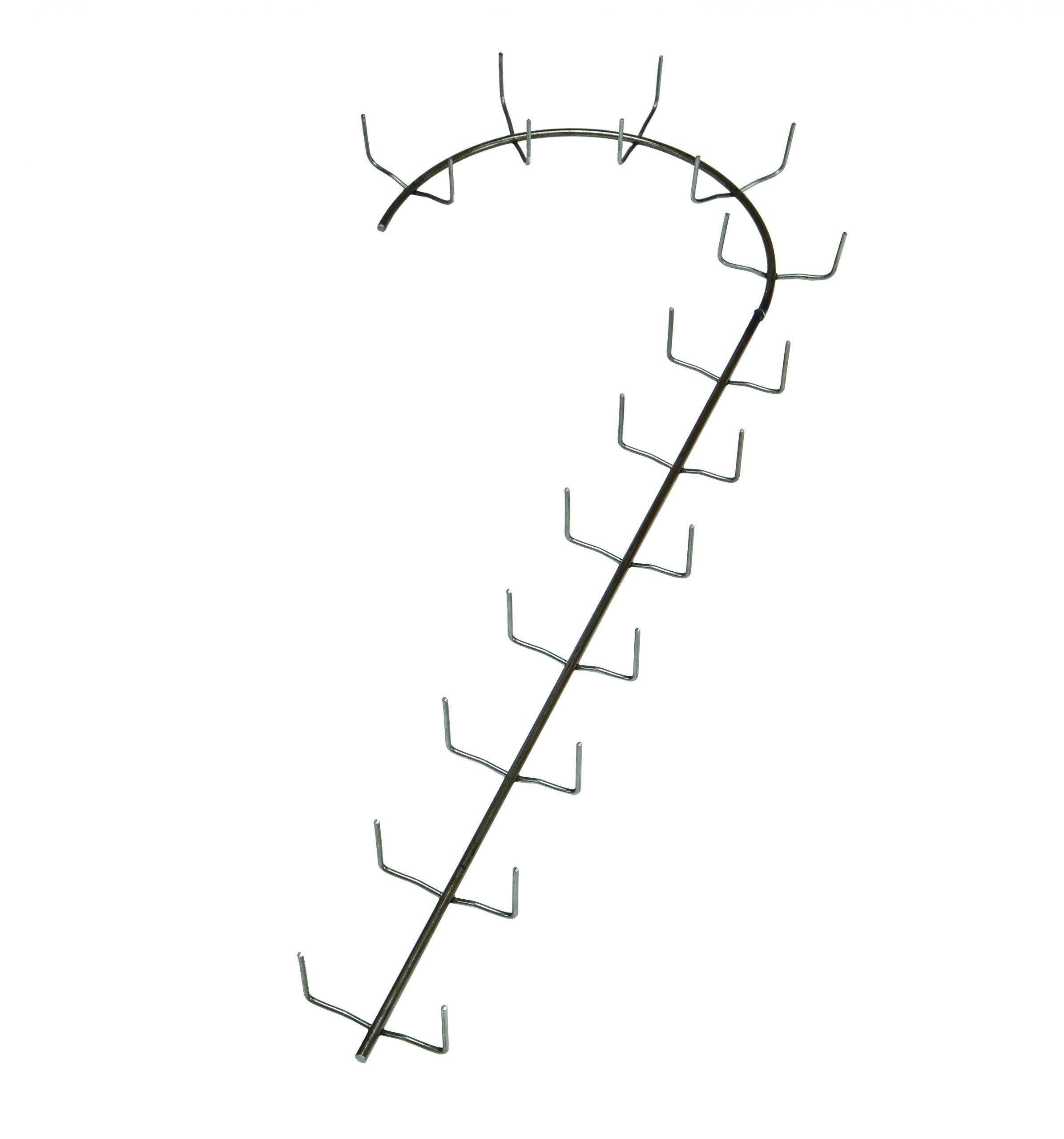 A larger version of our festive clamp candy cane ring, this 24″ wreath form with a left-handed design, painted with an elegant green finish. Perfect for Christmas displays as well as winter-themed decorations for any holiday or occasion, the green powder coat stands up to the harshest outdoor elements while blending perfectly with your Christmas colors or custom foliage. Designed for long-lasting durability, this 24″ Clamp Candy Cane features 13 regular-sized clips on a 5-gauge, 0.207″ diameter steel wire frame. The clamp shape’s left-handedness is determined by direction that the hook turns at top of cane.