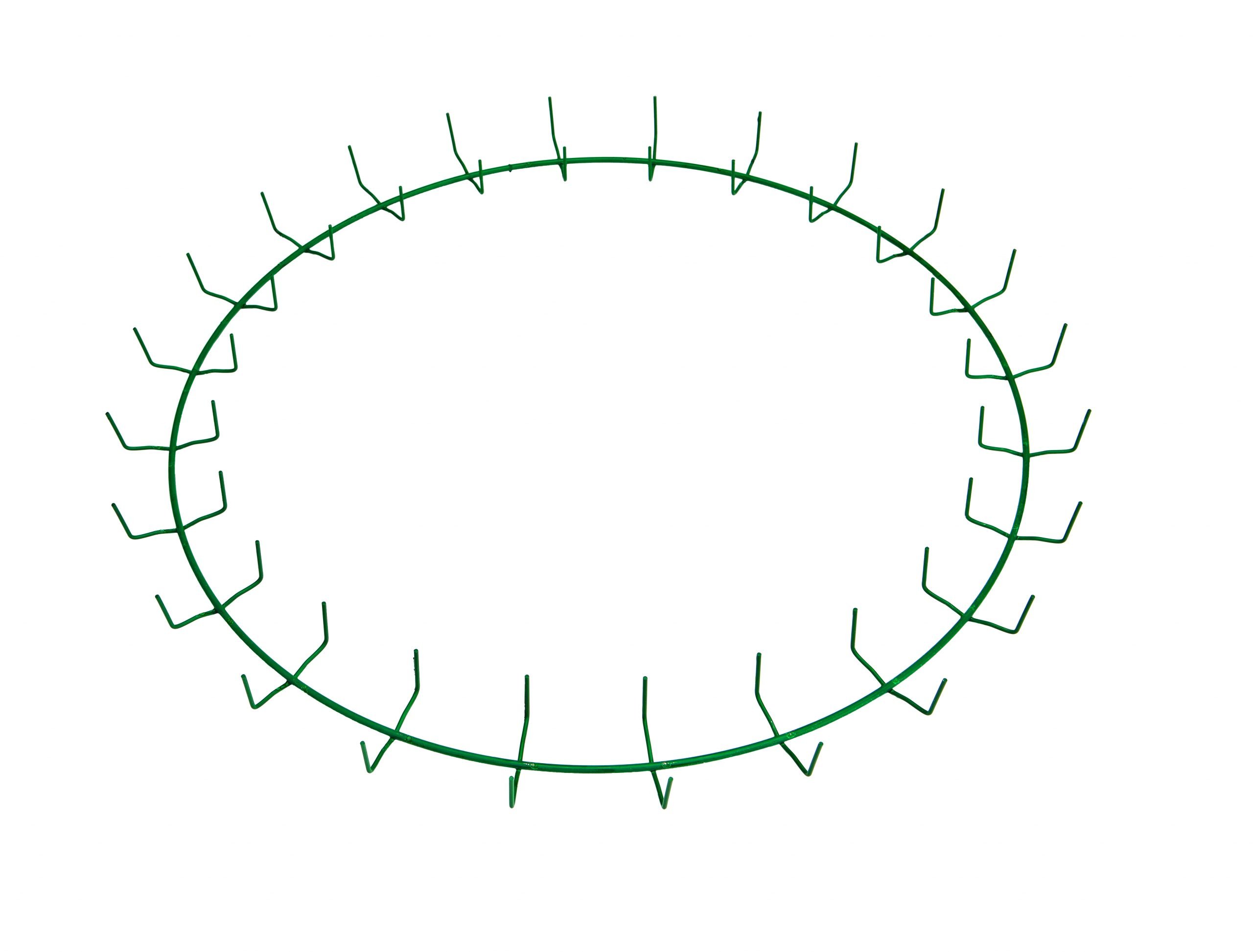 Our 24″ clamp ring painted in a festive green finish, featuring 24 sturdy regular-sized clips. This custom wreath clamp ring is constructed from durable 6-gauge solid steel wire at 0.192″ in diameter. Yielding finished custom wreaths approaching three feet in diameter, it’s perfect for crafting custom wall and window wreaths for Christmas time or any evergreen winter theme. Its durable 6-gauge steel frame is finished in a premium green paint that will keep its color and clamp your custom wreath materials perfectly in shape throughout the entire season.