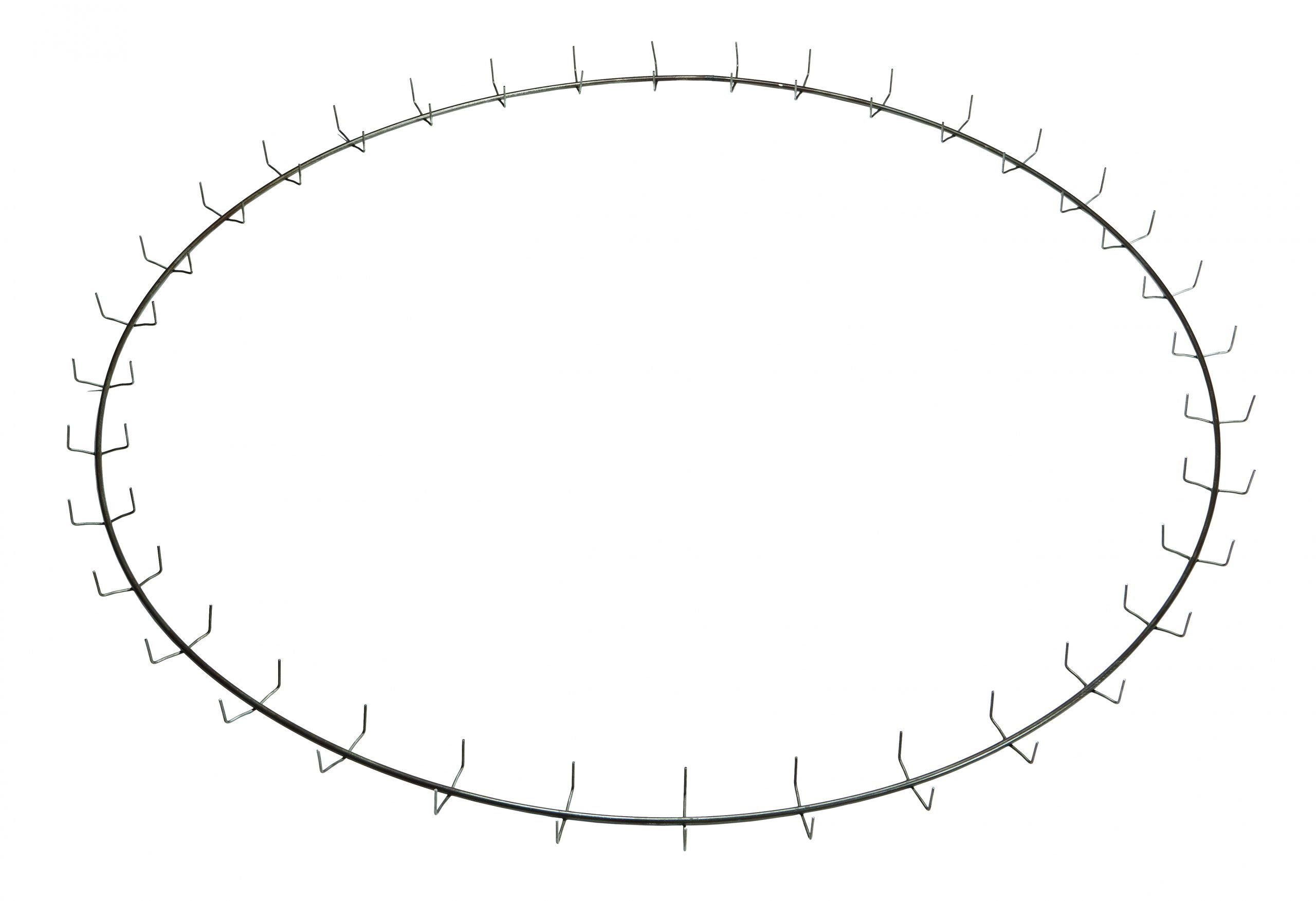 This clamp ring has 36 large clips on a frame wire of 00 gauge or 0.331″ diameter. Outside diameter of the hoop is 54″.