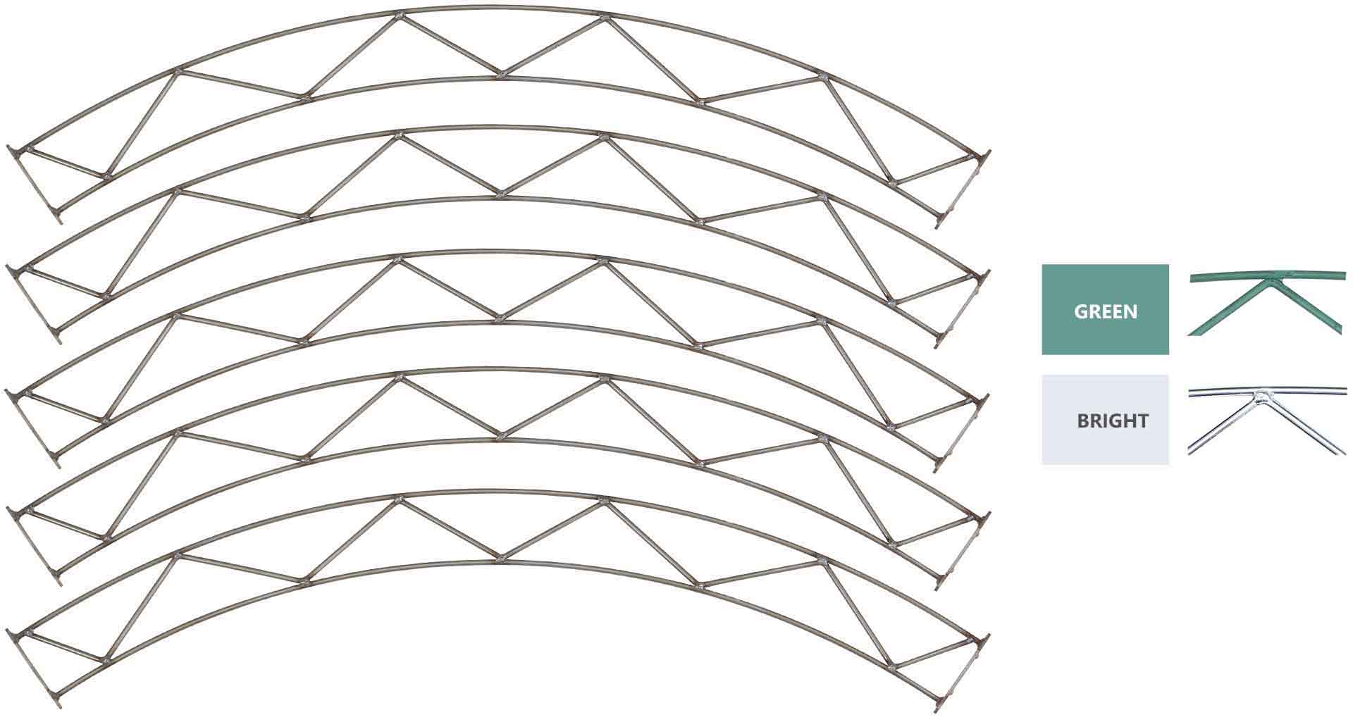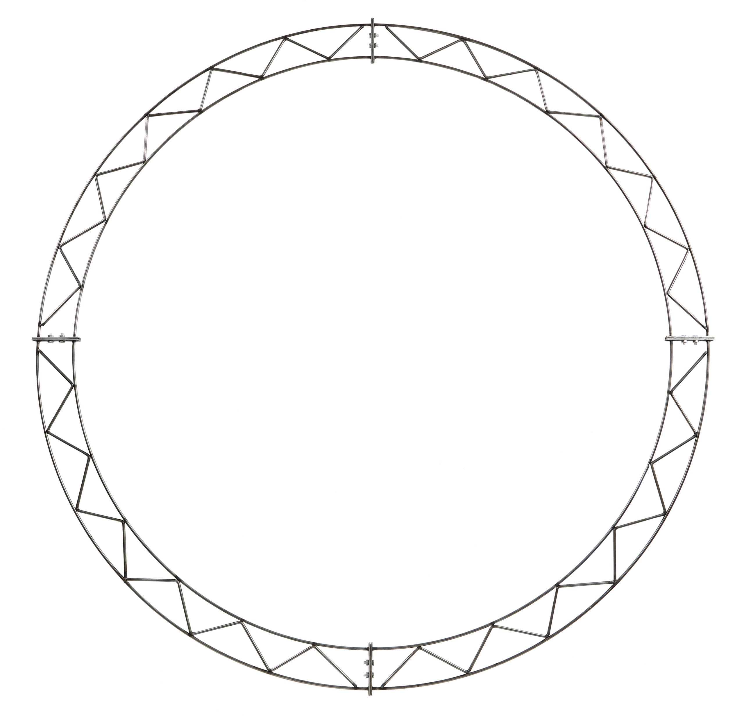 Our 72″ Double-Rail Hand-Tied Ring in “Build-It-Yourself” guise. This ingenious DIY model is constructed from five (5) separate sections that easily bolt together. All required bolts and hardware are included. This model is electro-plated with our shiny “Bright Zinc” finish which is chrome in appearance. The highly durable electro-plate finish protects the steel from rust and corrosion, while the shiny chrome appearance stands out to compliment virtually any custom decorations that you use to adorn this ring.