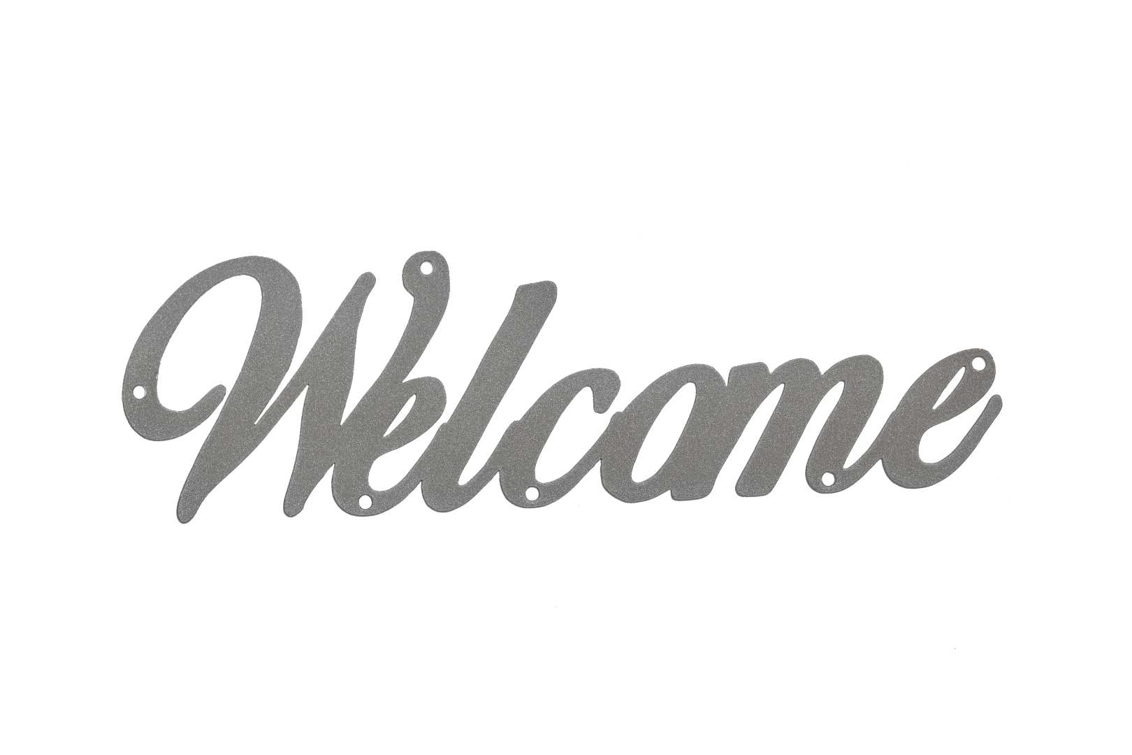 Mitchell’s premium laser-cut “Welcome” sign is the perfect finishing touch for your home or commercial holiday decor. Measuring approximately 10″ wide by 3″ high, these signs work great as a standalone decoration or as the centerpiece to your more elaborate custom wreath arrangement. Manufactured in the USA, our quality-built “Welcome” signs are laser cut from sturdy 16-gauge steel and include six convenient mounting holes. This version is painted in our shining silver finish, powder coated locally. Part of Mitchell’s premium line of custom Wreath Bling accessories, our “Welcome” signs are ideal for dedicated DIY wreath builders, festive homeowners, as well as commercial holiday displays.